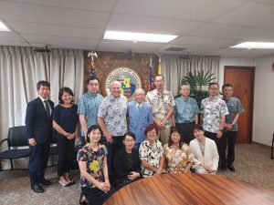 The Honolulu Junior Japanese Chamber of Commerce alongside their Kobe Jaycee sister chapter visited Honolulu Hale and met with Deputy Managing Director Krishna Jayaram and Executive Director of MOCA Kaʻili Trask O’Connell.